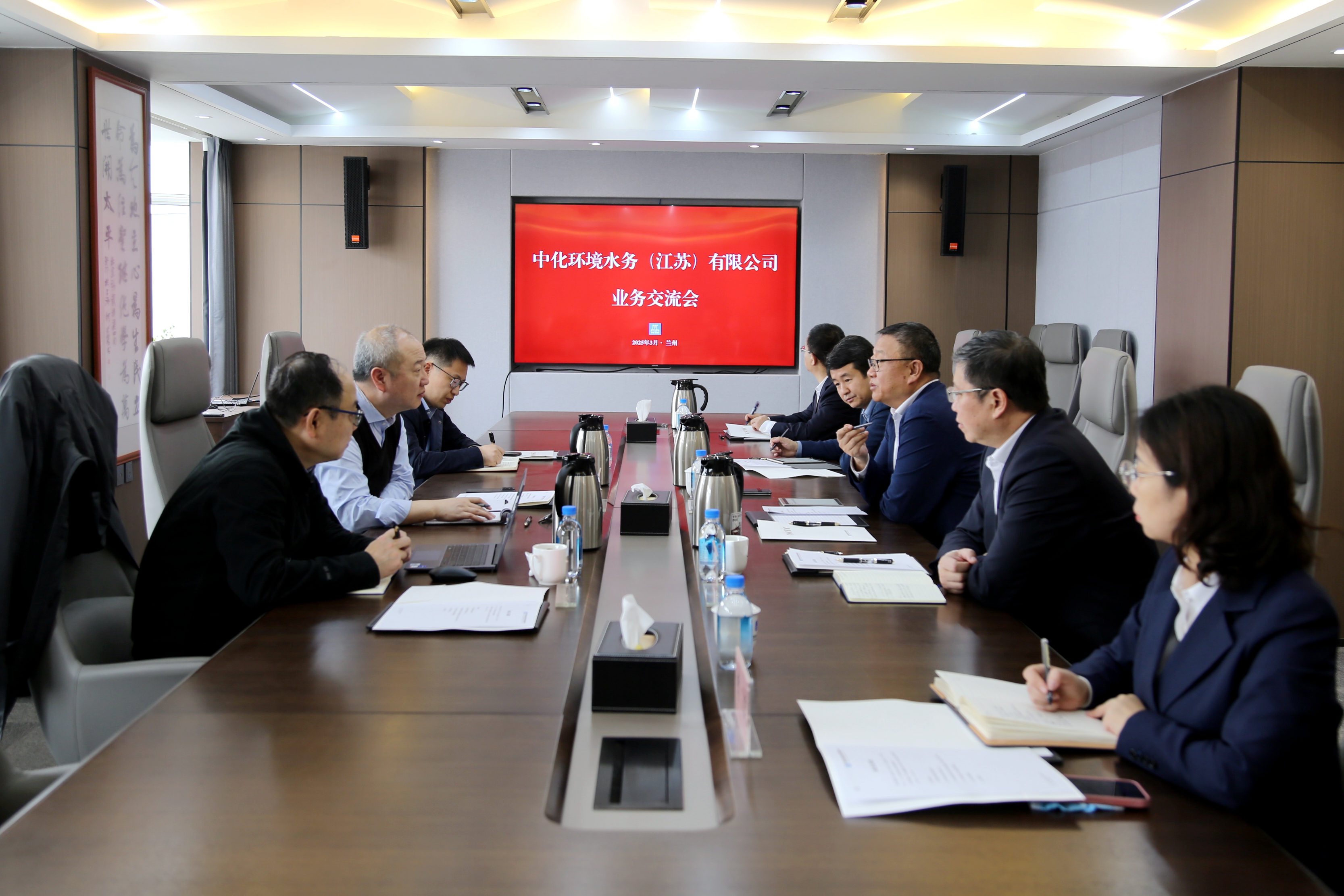 3月26日,副总经理徐栋与到访的中化环境水务(江苏)有限公司总经理李学军一行座谈交流。 会上,徐栋对市政西北院的发展历程、设计资质、专业优势、业务板块、市场布局、战略规划等情况作了介绍,并详细介绍了市政西北院在市政水务领域的重点项目及发展情况。他表示,中化环境水务公司在工业废水治理、园区水务运维等领域具有丰富经验,希望双方加强技术互补、资源共享,在黄河流域生态治理、长三角一体化示范区等领域形成合力,探索“设计+施工+运营”的全产业链协同模式。 李学军对中化环境水务公司的业务领域、企业优势、核心技术、施工工艺、代表项目作简要介绍。他指出,市政西北院在市政水务领域设计实力雄厚,在智慧水务系统开发、高难度工业废水处理等方向取得多项专利成果,希望深化工业污水、再生水、中水回用等方面合作,共同打造战略性好产品,协同构建水系统服务产业链,实现互利共赢。